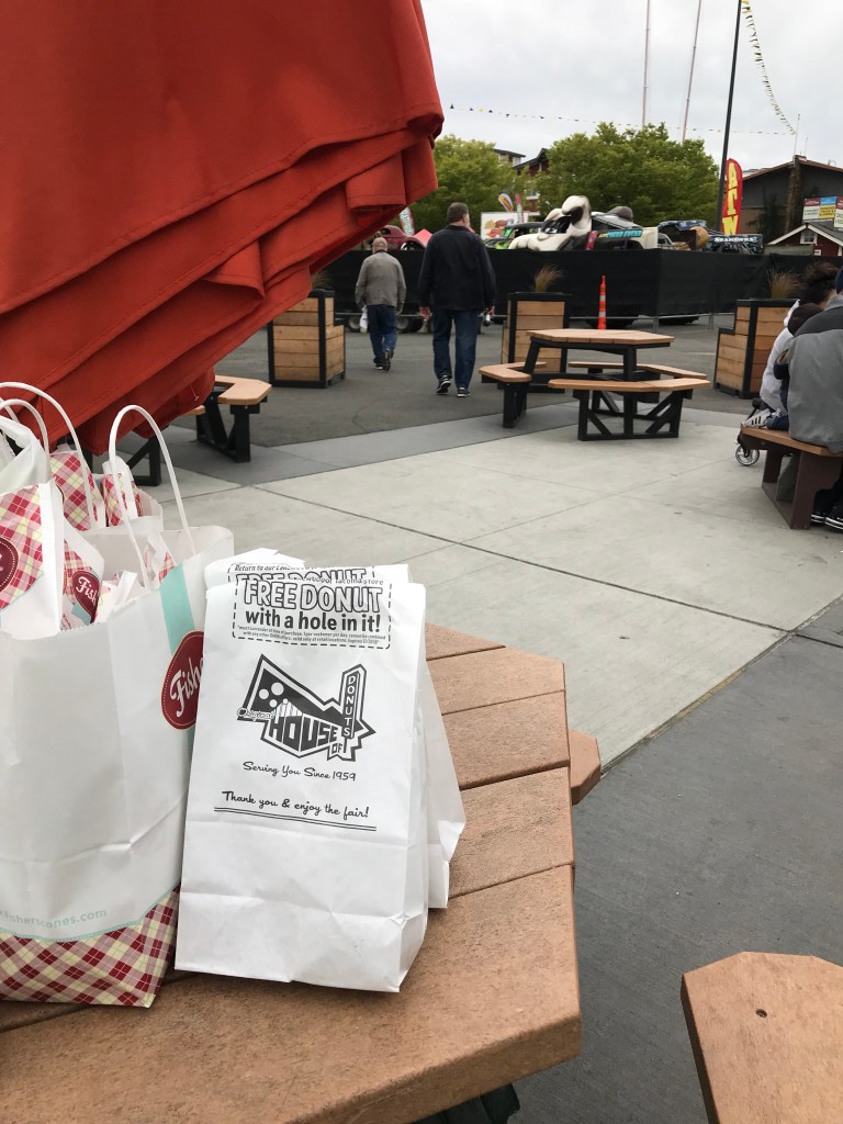 A view of the “napping” monster trucks