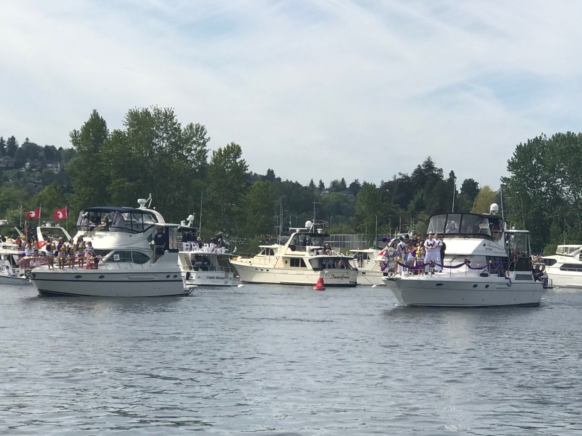 The Husky cheer squad and band