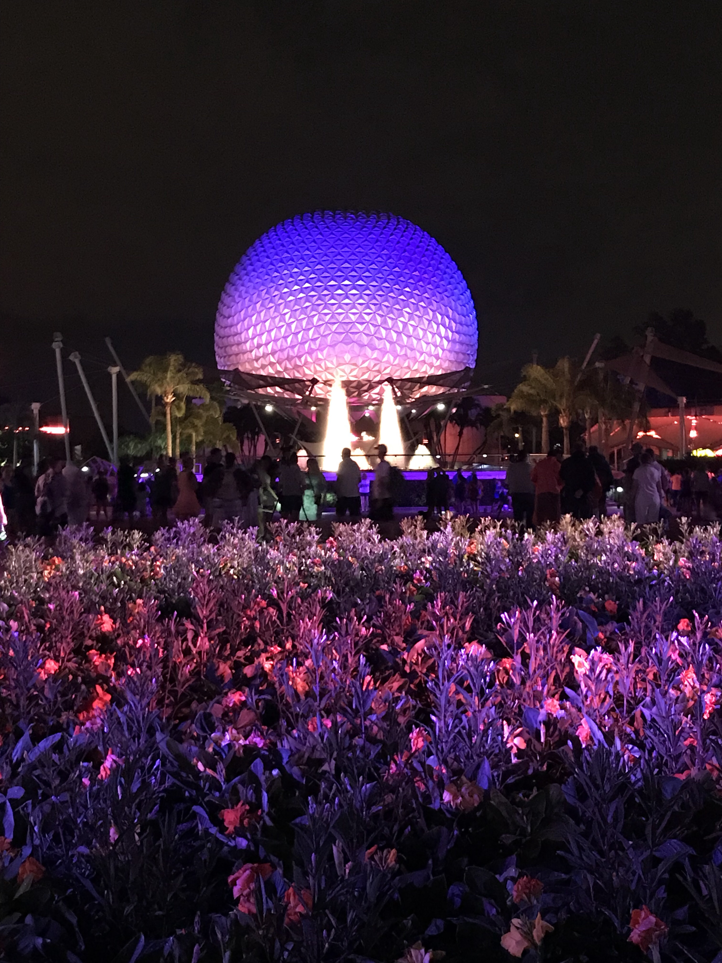 Flowers, Spaceship Earth and the fountain